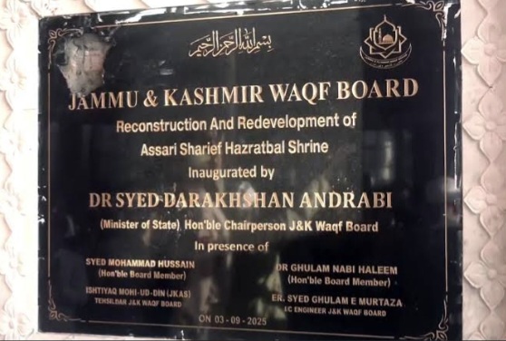 श्रीनगर : शुक्रवार 5 सितंबर 2025 को हजरतबल दरगाह में अशोक चिह्न वाली जम्मू-कश्मीर वक्फ बोर्ड पट्टिका को तोड़े जाने के बाद कश्मीर में विवाद बढ़ता जा रहा है और द रेजिस्टेंस फोरम TRF आतंकी संगठन इस विवाद को बढ़ा रहा है। TRF ने जम्मू-कश्मीर वक्फ बोर्ड की अध्यक्ष डॉ दरख्वशां अंद्राबी को एवं परिवार और सहयोगियों को जान से मारने की धमकी दी है।